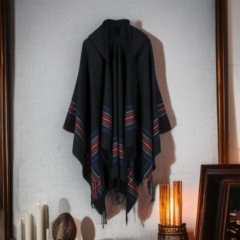 대형 스코틀랜드 줄무늬 목도리 후드 캐주얼 비탄성 두꺼운 술 카디건 가을 겨울 야외 방풍 담요 목도리 망토