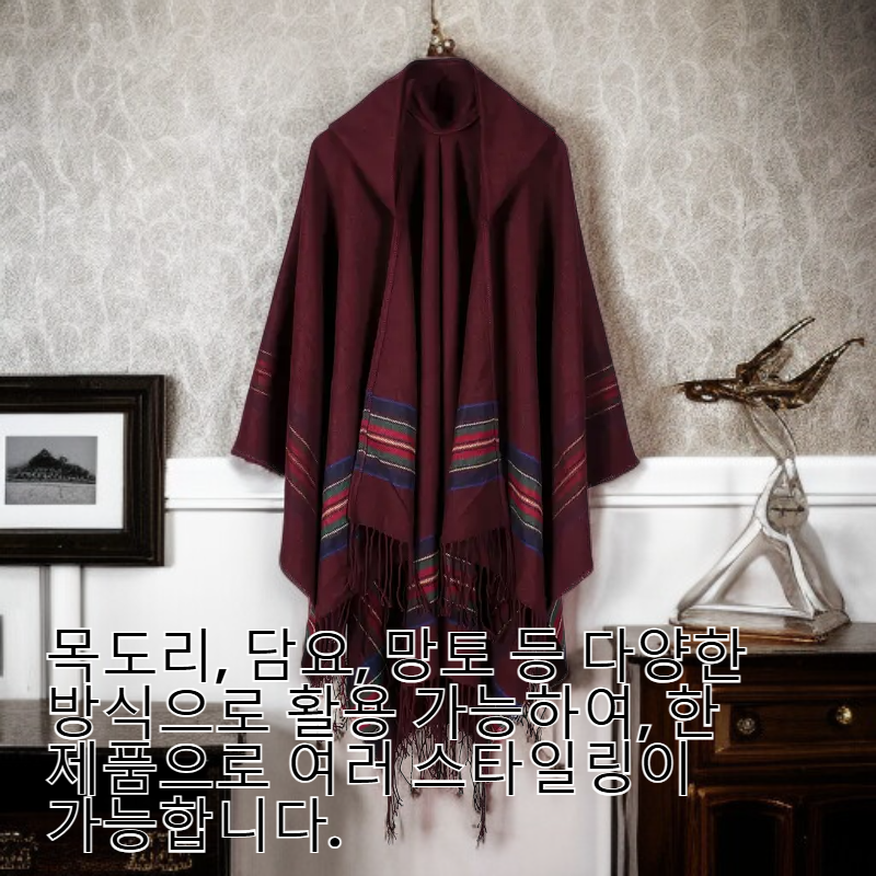 ● 목도리, 담요, 망토 등 다양한 방식으로 활용 가능하여, 한 제품으로 여러 스타일링이 가능합니다.