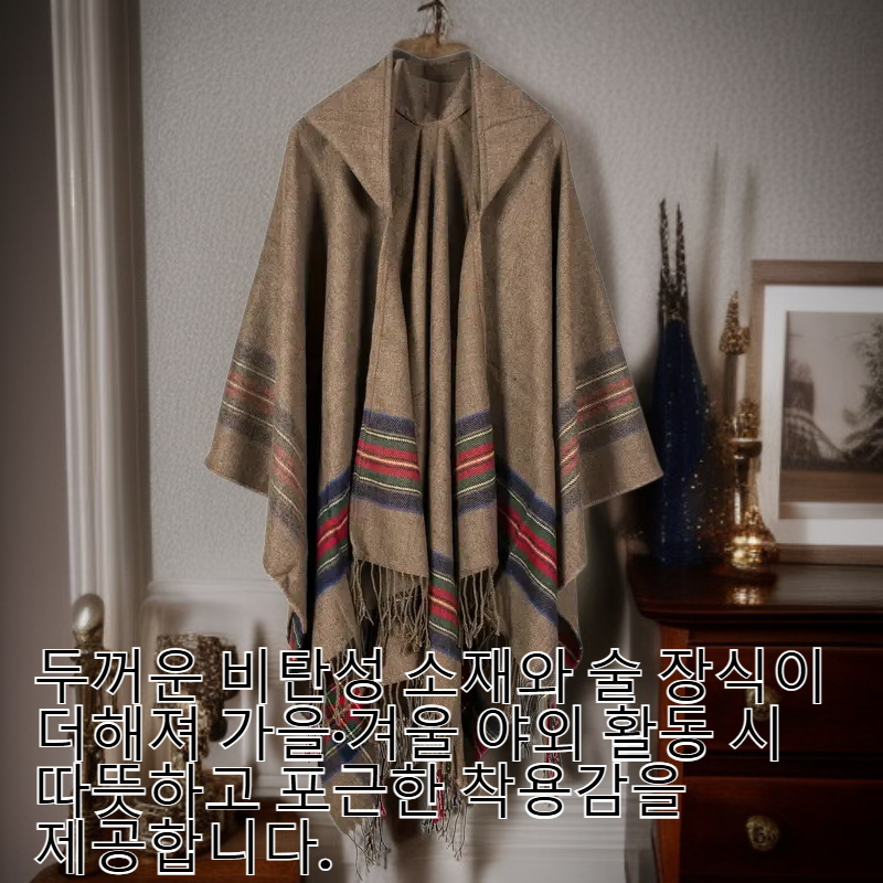 ● 두꺼운 비탄성 소재와 술 장식이 더해져 가을·겨울 야외 활동 시 따뜻하고 포근한 착용감을 제공합니다.