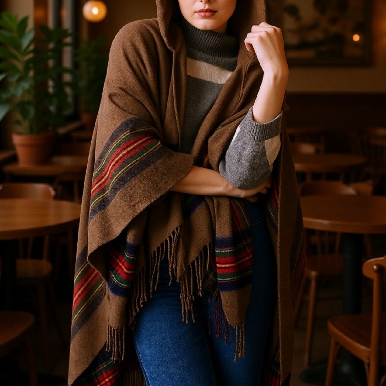 ● 대형 스코틀랜드 체크 패턴으로 세련된 스타일을 연출하며, 후드 디자인으로 실용성과 멋을 동시에 잡았습니다.